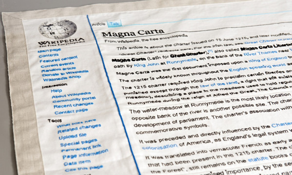 Magna Carta (An Embroidery) is a major new artwork by the acclaimed British artist Cornelia Parker which has been commissioned by the Ruskin School of Art to celebrate the 800th anniversary of Magna Carta in 2015.