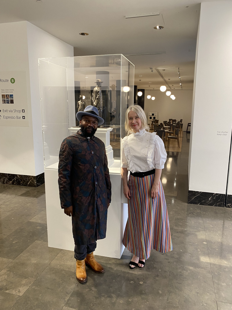Antelope restages a photograph of Baptist preacher and pan-Africanist (belief in a unified African nation) John Chilembwe and European missionary John Chorley as a sculpture.
